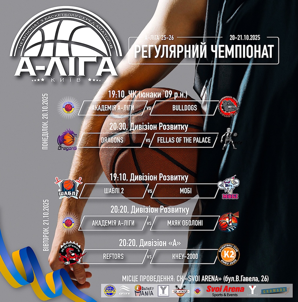 Регулярний чемпіонат А-Ліги сезону 2025/2026 продовжує набирати обертів! Вже цього понеділка та вівторка, 20 та 21 жовтня, паркет СК «Svoi Arena» прийме матчі четвертого ігрового тижня. На нас чекає принципове протистояння у Дивізіоні А та битва титанів Дивізіону Розвитку.